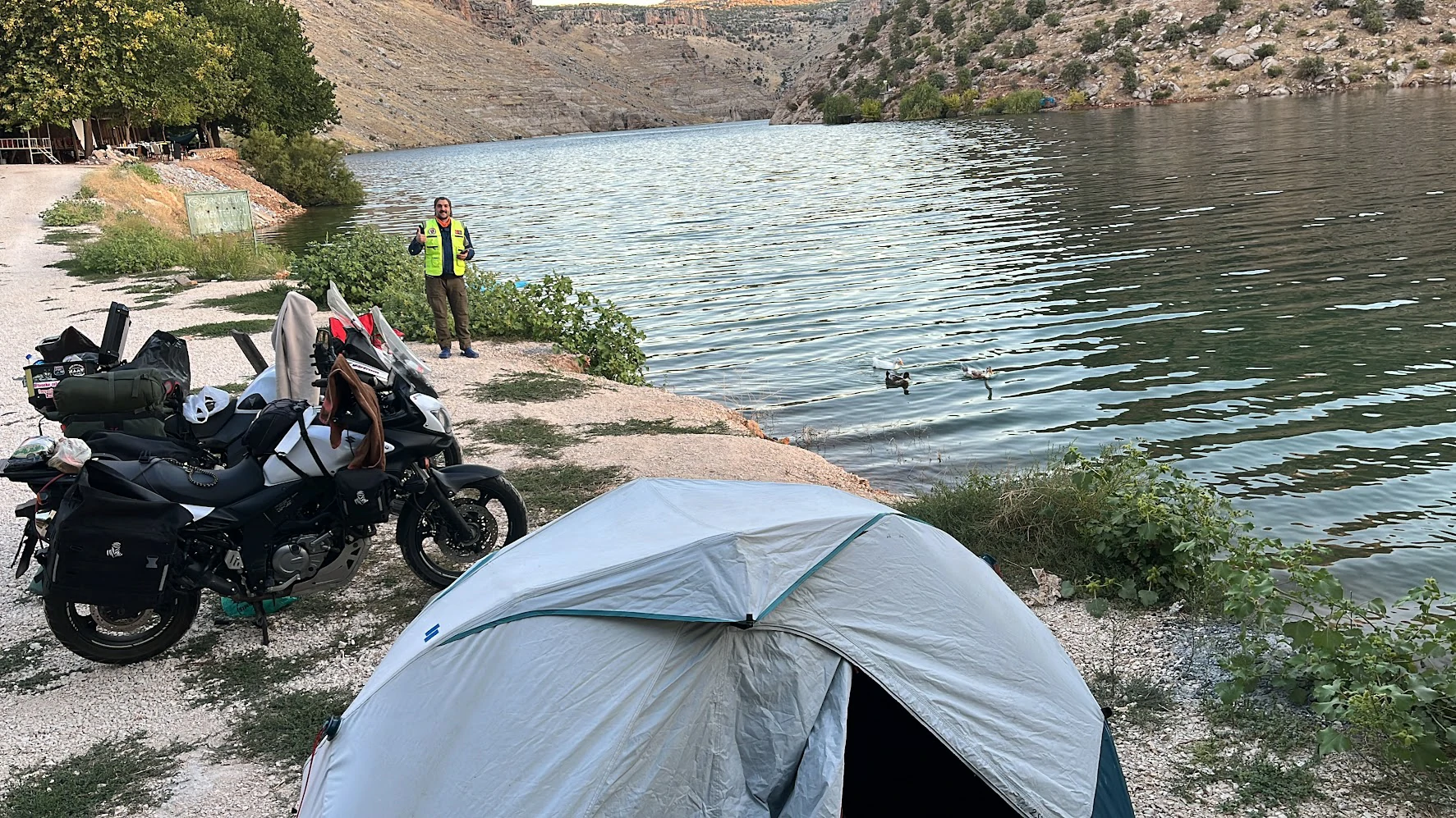 Bu nedenle parayı nakit yatırmaya karar verdik. Ancak Ankara’da koca bir gün boyunca “Ankara kazan biz kepçe” dolaşmamıza rağmen bankalarda nakit dolar bulamadık. Çözümü, rotamız üzerindeki Diyarbakır şubesine nakit hazırlatmakta bulup Ankara’dan ayrıldık. İlk kampımızı Kayseri’nin Ebiç köyünde, muhtarın misafirperverliği ve barajın sessiz manzarası eşliğinde çadırlarımızı kurarak geçirdik.